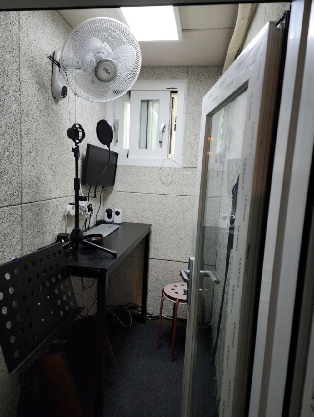 (Senior Dunce의 작은 녹음 부스, 이곳에서 그와 함께 작업한 많은 아티스트가 거쳐갔다)